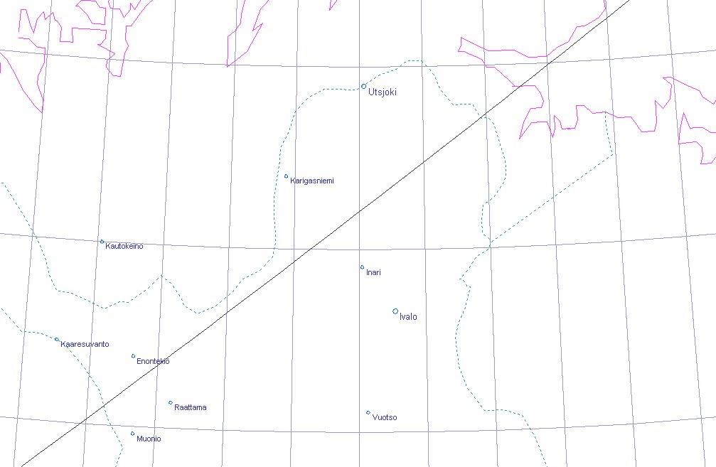 ja Inarin Suopumajärven kautta kulkevalla viivalla. Viivan pohjoispuolella tähti