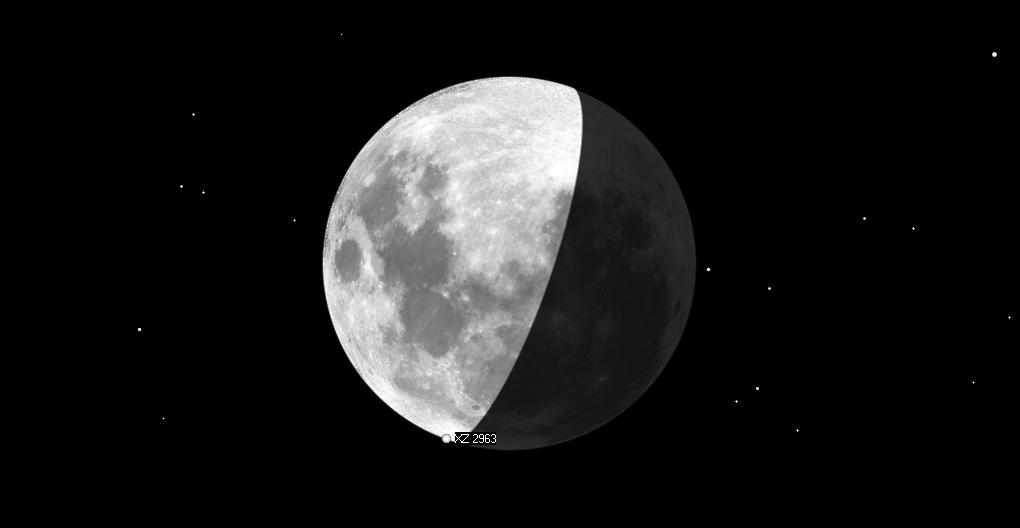 Tähti ZC 0317 (6,4 mag) sivuaa Kuun pohjoista reunaa Enontekiön Vuosukkaselän
