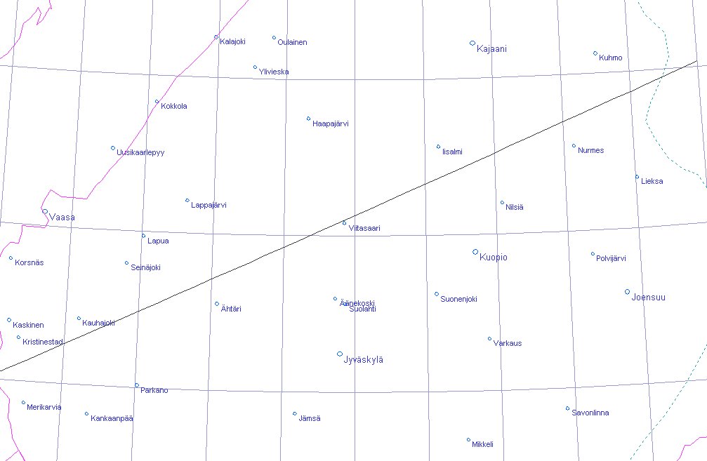 Kristiinankaupungin Pakankylän ja Kuhmon Riihivaaran kautta kulkevan viivan kohdalla.