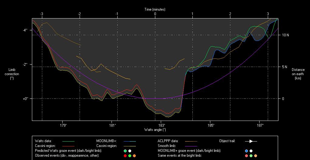 183, 185 ja 187° ovat Kuun pohjoisnavan suunnan suhteen laskettuja suuntakulmia. Kuvan
