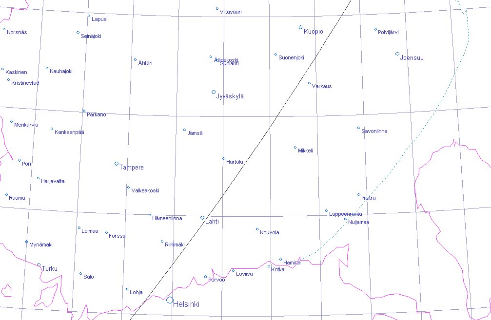 | 27 00 | 61 53 56 | 21.36.54 | | 22 | 91 | 344,3 | 1,44 | -2,28N | Mikkeli, Rauhasalmi |
