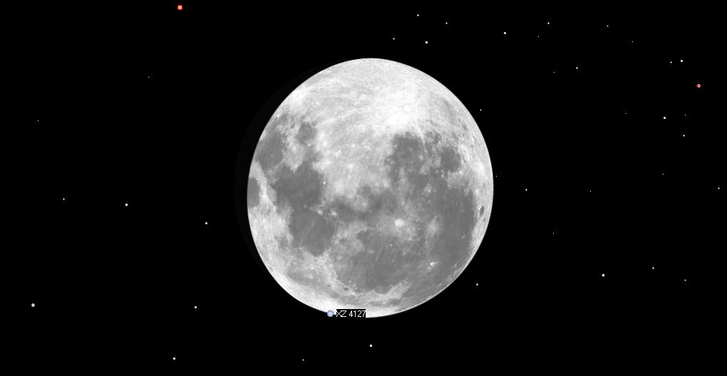 kautta kulkevan viivan kohdalla. Viivan pohjoispuolella tähti ohittaa Kuun. Kuun