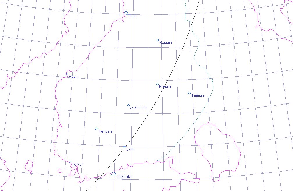 | 29 30 | 64 01 16 | 22.41.14 | -9 | 6 | 54 | 349,0 | 3,85 | -2,21N | Kuhmo, Kuusela |