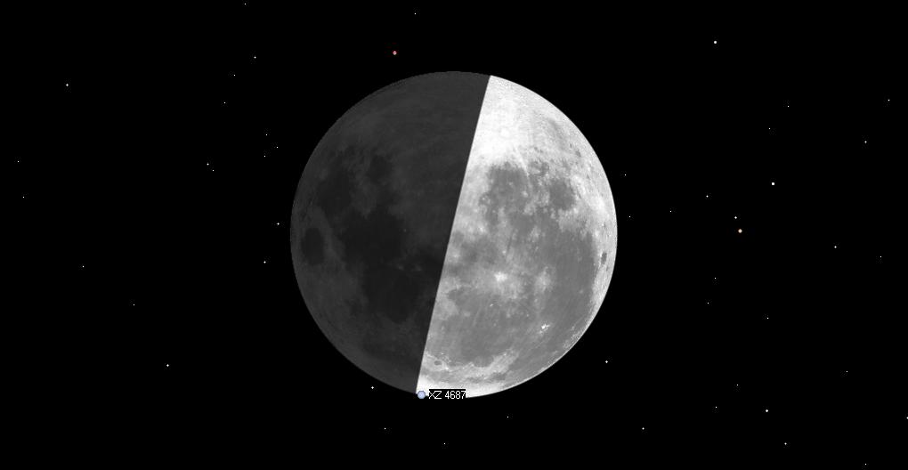 Tähti ZC 0525 (6,5 mag) sivuaa Kuun pohjoista reunaa Inkoon Gammelbylandetin ja
