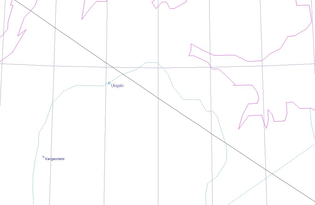 eteläpuolella. Tarkemmin sivuamisviivan kulun saa Google Earth -ohjelman avulla.