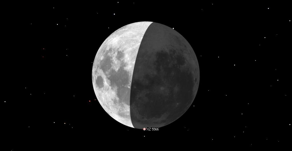 Vatsarin kautta kulkevan viivan kohdalla. Viivan pohjoispuolella tähti ohittaa Kuun.