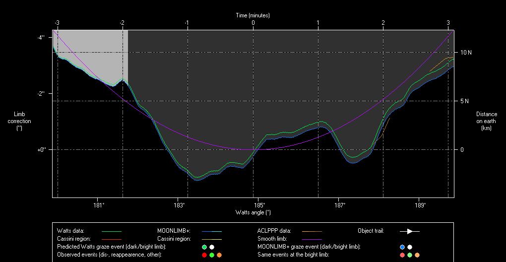 185, 187 ja 189° ovat Kuun pohjoisnavan suunnan suhteen laskettuja suuntakulmia. Kuvan