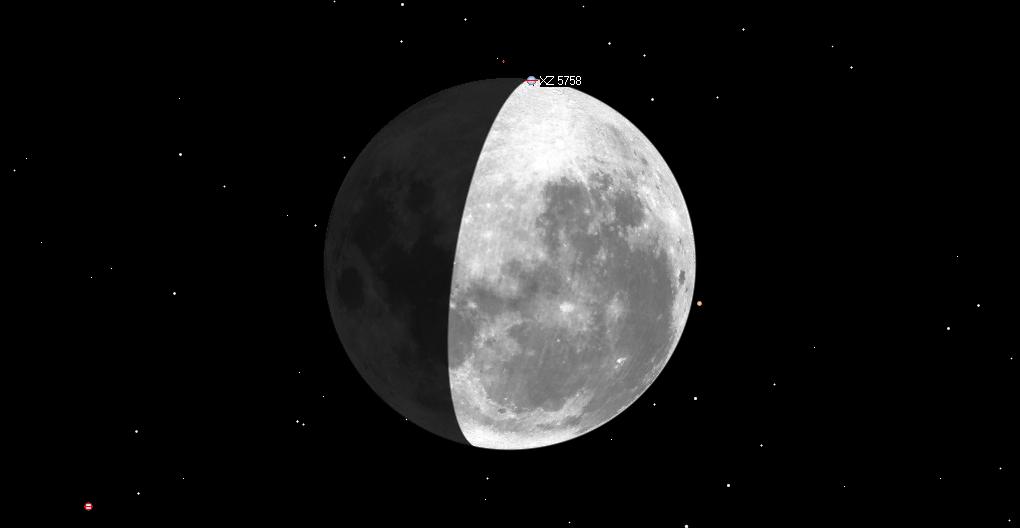 eteläpuolella tähti ohittaa Kuun. Kuun pohjoisnapa on kääntynyt 0,4