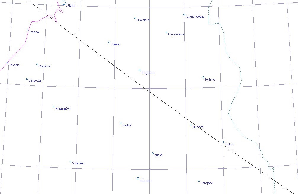 | 27 30 | 64 06 59 | 21.16.50 | -6 | 31 | 257 | 183,2 | 191,06 | -9,50S | Kajaani, Kurunperä |