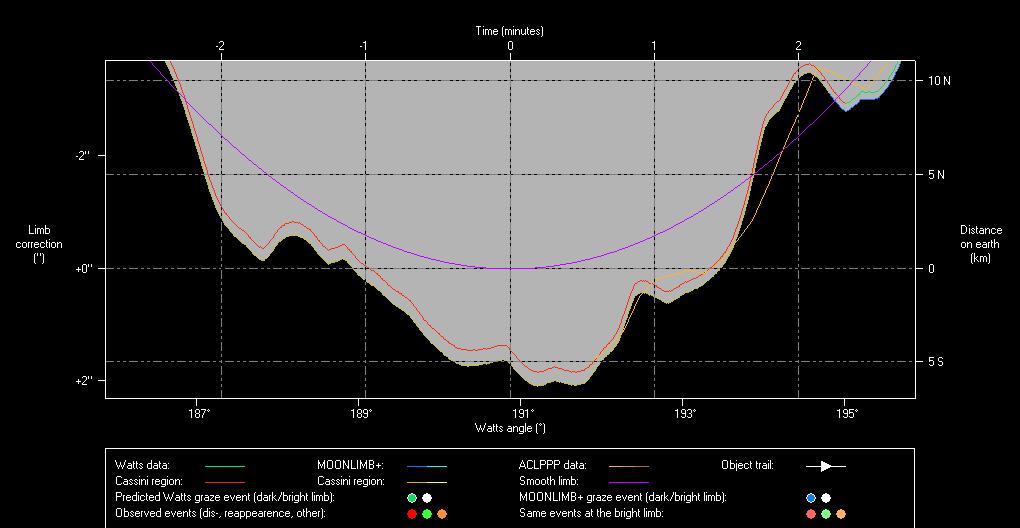 191, 193 ja 195° ovat Kuun pohjoisnavan suunnan suhteen laskettuja suuntakulmia. Kuvan