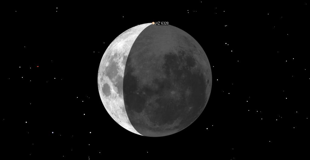 Kuu on kaikkialla sivuamisviivan kohdalla noin 30 asteen korkeudella länsitaivaalla.