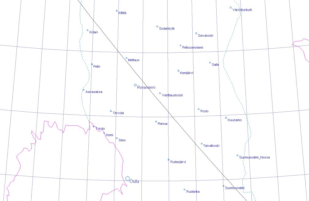 | 26 00 | 66 33 33 | 01.17.53 | | 28 | 265 | 7,7 | 11,18 | 9,61N | Rovaniemi, Matkalampi |