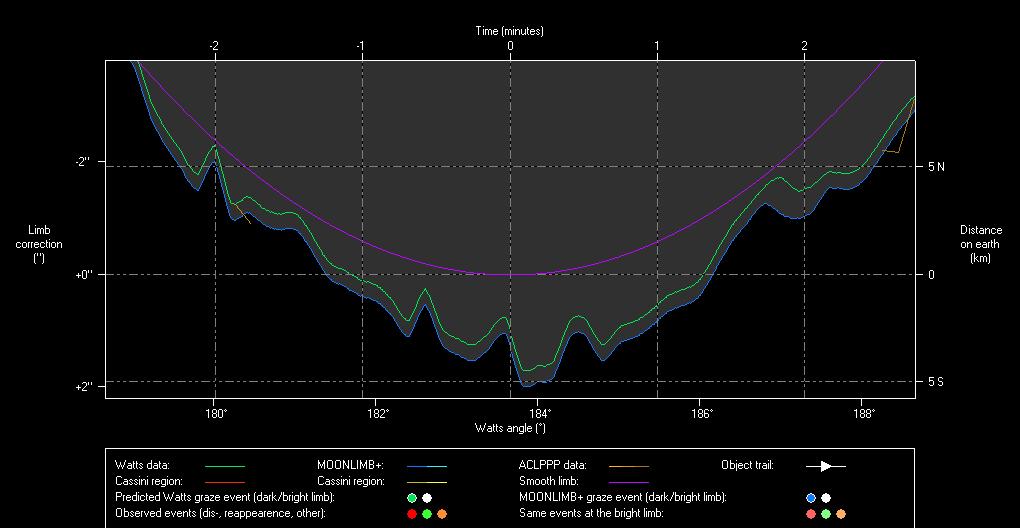 184, 186 ja 188° ovat Kuun pohjoisnavan suunnan suhteen laskettuja suuntakulmia. Kuvan