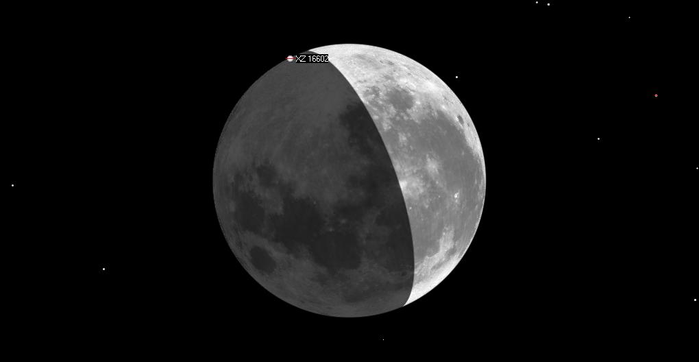 Tähti ZC 1604 (6,1 mag) sivuaa Kuun eteläistä reunaa Kolarin