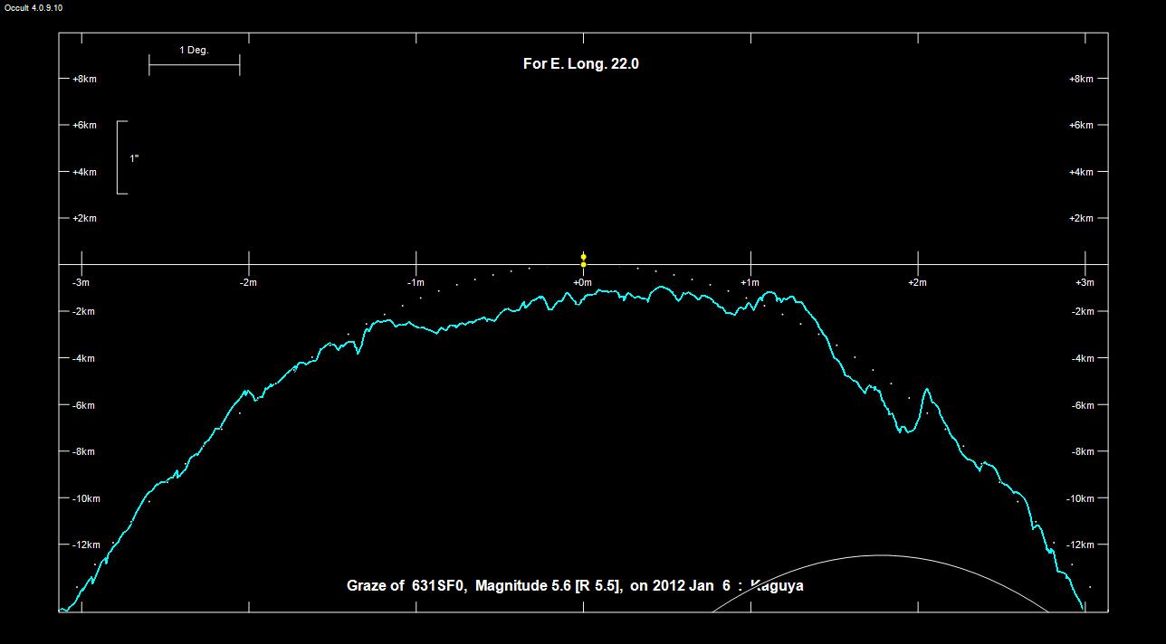 5 ja 3° ovat Kuun pohjoisnavan suunnan suhteen laskettuja suuntakulmia. Kuvan
