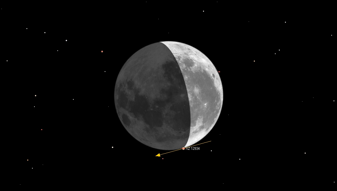 Havaitsemiseen tarvittaneen 20 cm:n läpimittainen kaukoputki. Kuu on sivuamisviivan