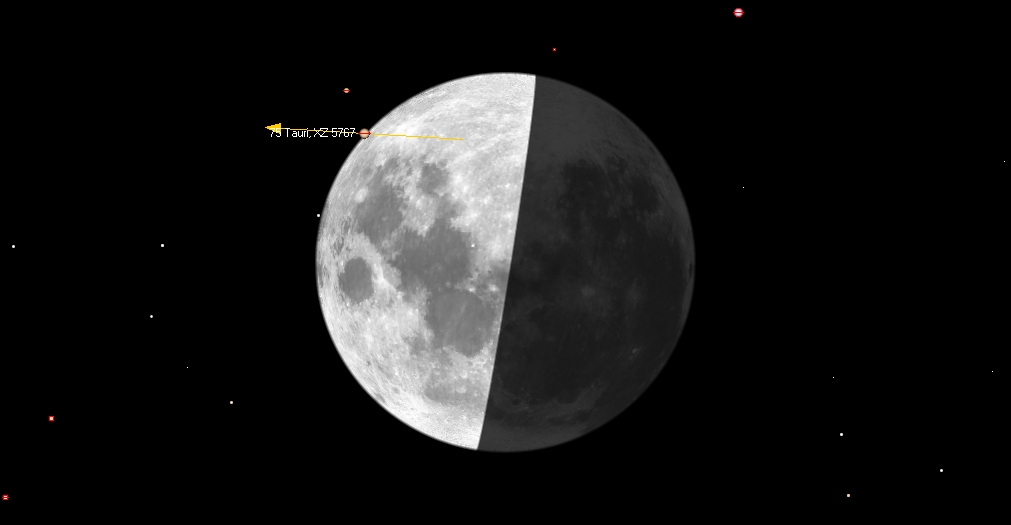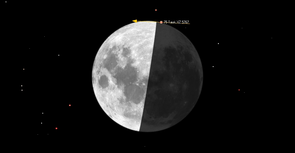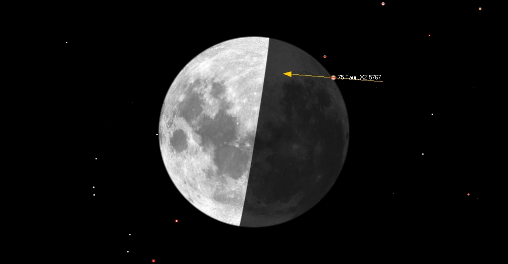 ZC 0667, 75 Tauri peittyy Utsjoella 25.02.2015 kello 22.14