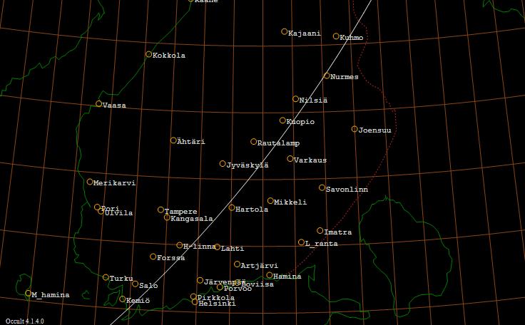 22 km, sivuamishetki klo 02.20.03), Kuopion (pituus 27,6, leveys 62,9, etäisyys sivuamisviivaan 15 km, sivuamishetki