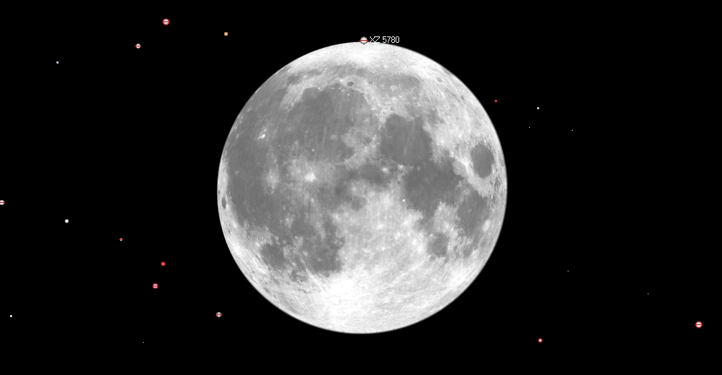 reunan puolella. Havaitsemiseen tarvitaan 20 cm:n läpimittainen kaukoputki. Kuu on sivuamisviivan kohdalla