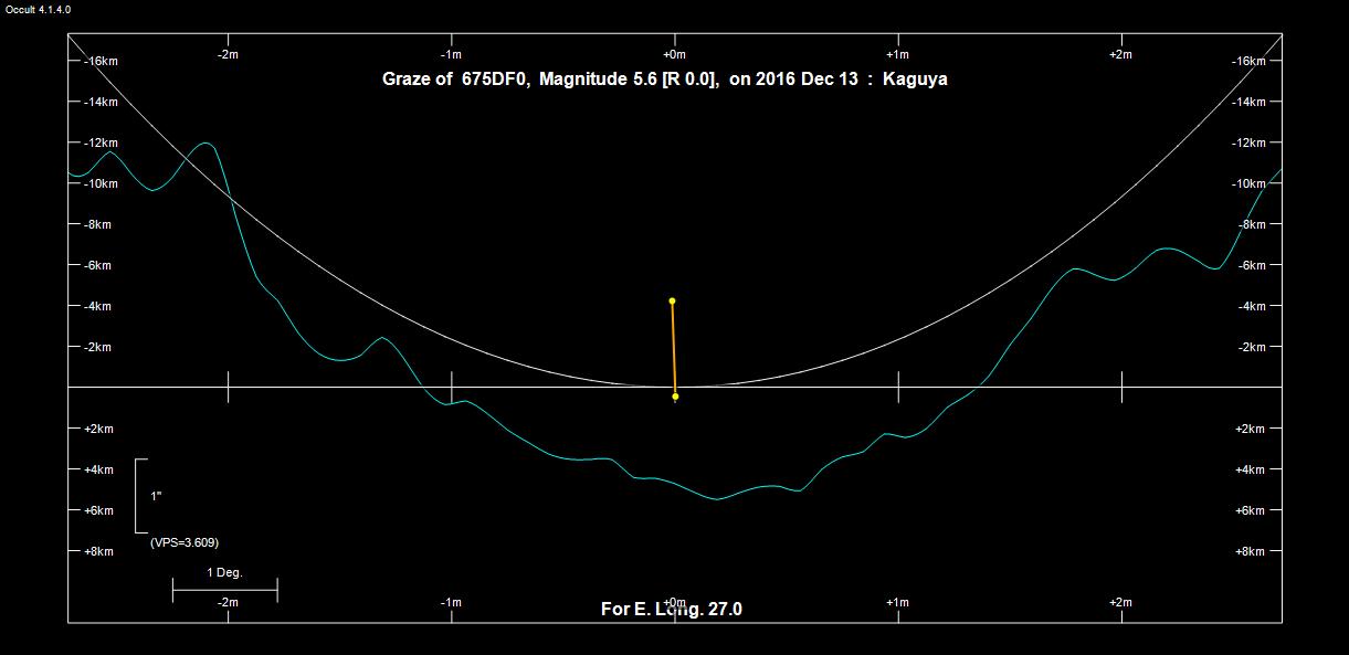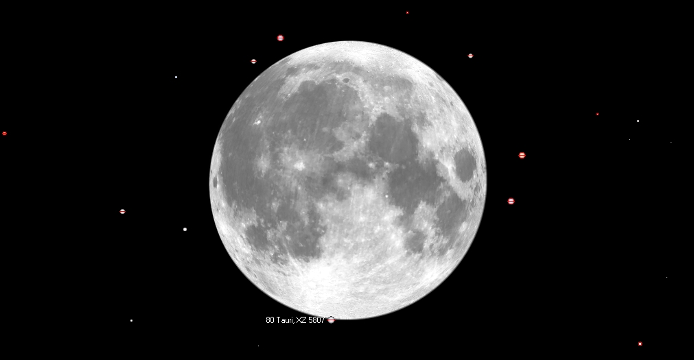 reunan puolella. Havaitsemiseen tarvitaan 20 cm:n läpimittainen kaukoputki. Kuu on sivuamisviivan kohdalla