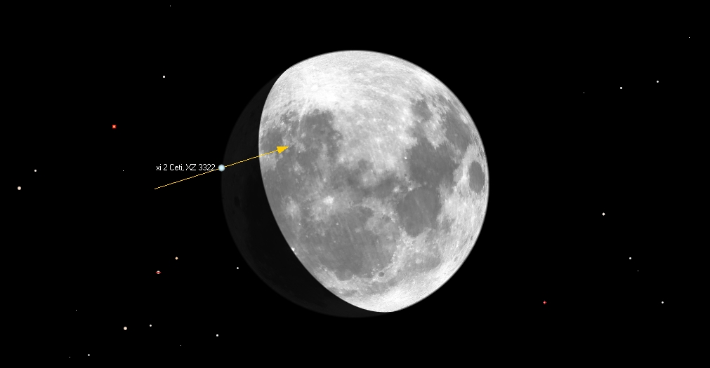 ZC 0364, ξ 2 Ceti peittyy Helsingissä 19.12.2018 kello 02.29.07