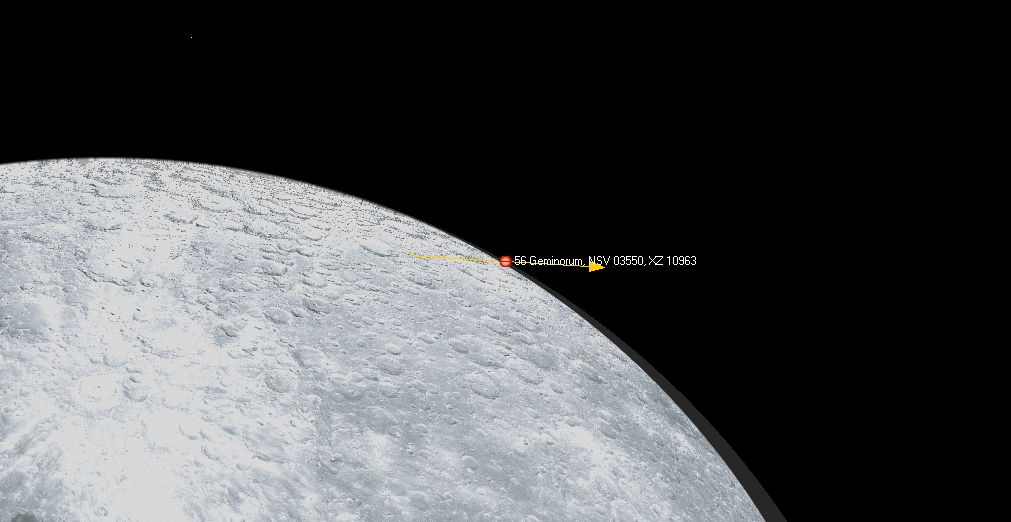ZC 1113, 56 Geminorum, 5,1 mag sivuaa Kuun eteläreunaa Joensuussa 24.12.2018 klo 01.50.54
