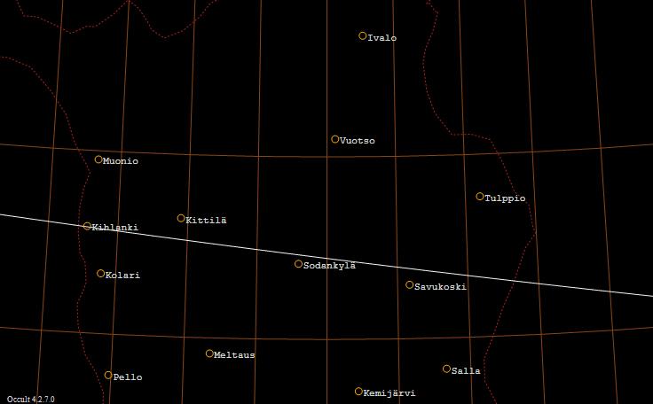 ζ Cancri (ZC 1236, 5,1 mag) sivuaa Kuun eteläistä reunaa Kihlangin, Sodankylän ja Savukosken välisellä viivalla.