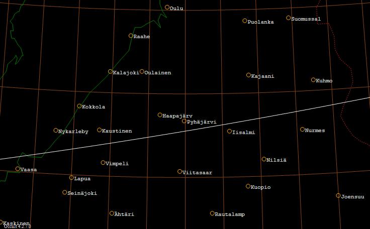 | Pituus | Leveys | kello | Aur h | Kuun h | Kuun ats | PA | AA | CA | Paikkakunta |