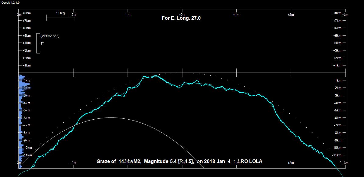 reunan puolella. Havaitsemiseen tarvitaan 20 cm:n läpimittainen kaukoputki. Kuu on sivuamisviivan kohdalla