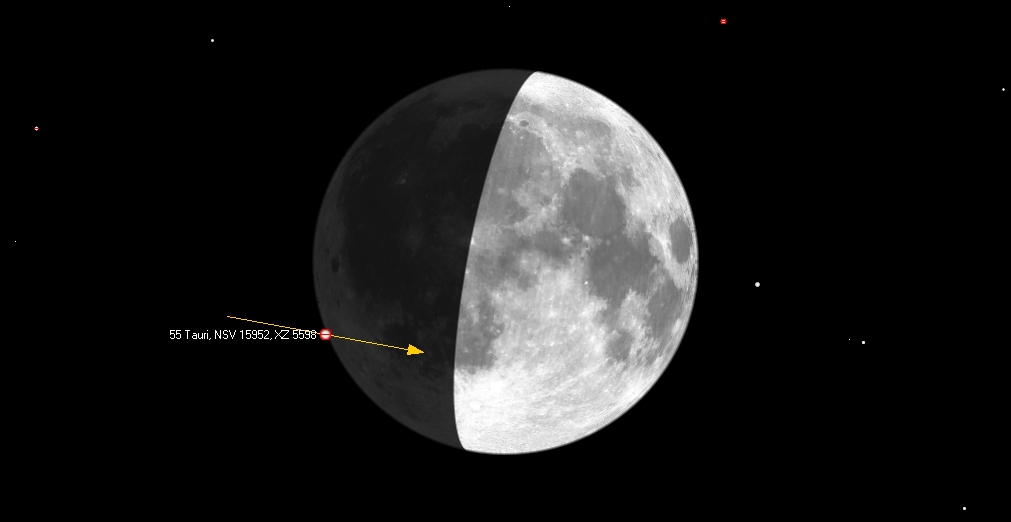 ZC 0636, 55 Tauri, 7,0 mag peittyy Helsingissä 13.02.2019 kello 23.26.12