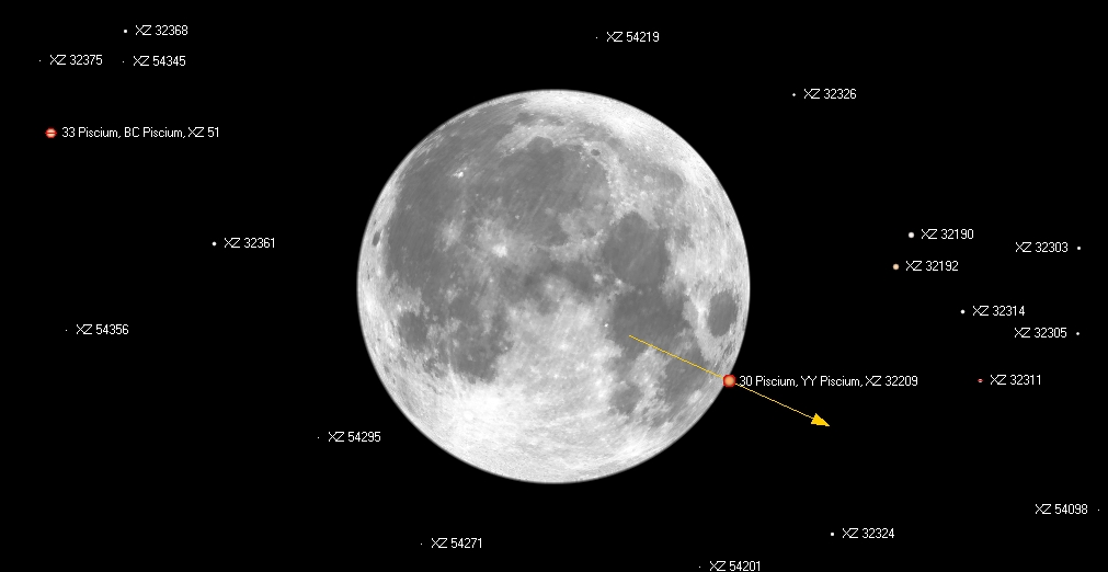ZC 3536, 30 Piscium, 4,4 mag peittyy Kajaanissa 14.09.2019 kello 21.42.45