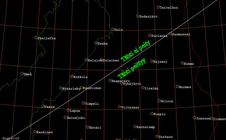 sivuamisviivaan on Suomussalmella. Viivan pohjoispuolella tähti ohittaa Kuun. Kuun pohjoisnapa on kääntynyt