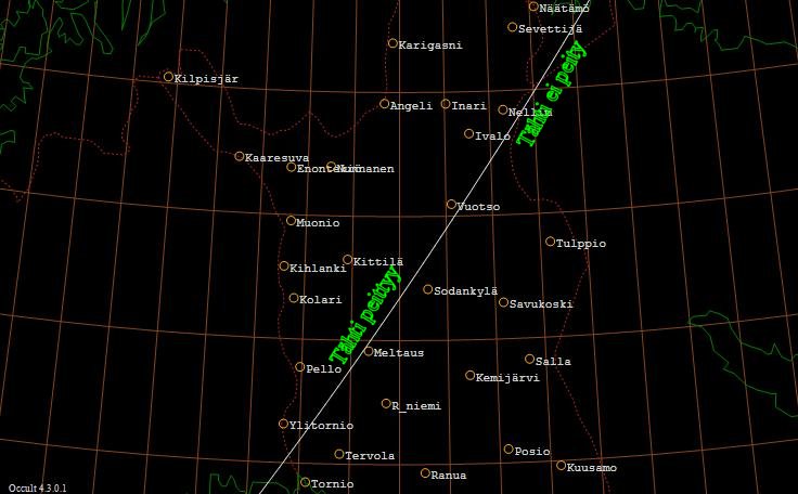 Pellossa (38 km), Näätämössä (39 km) ja Rovaniemellä (45 km). Viivan eteläpuolella tähti ohittaa Kuun. Kuun