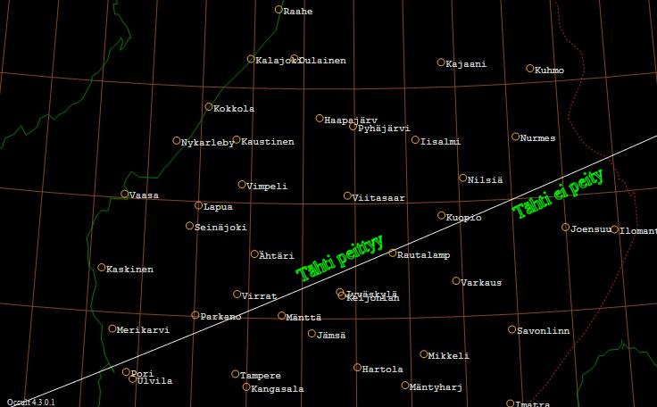 sivuamisviivaan ovat Rautalammilla (2 km), Porissa (10 km) ja Kuopiossa (13 km). Viivan eteläpuolella tähti