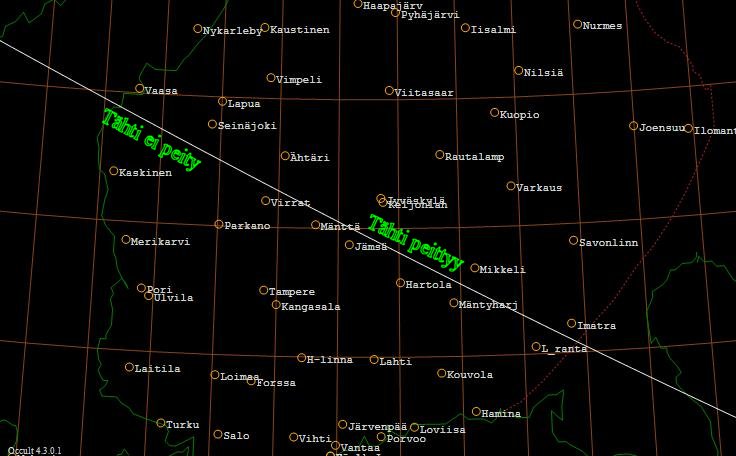 Mikkeli (18 km) ja Lappeenranta (19 km). Viivan pohjoispuolella tähti ohittaa Kuun. Kuun pohjoisnapa on kääntynyt