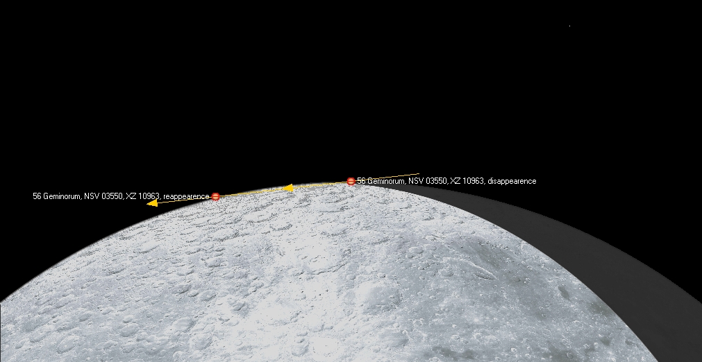 56 Geminorum -tähden (ZC 1113) sivuaminen 17.02.2019