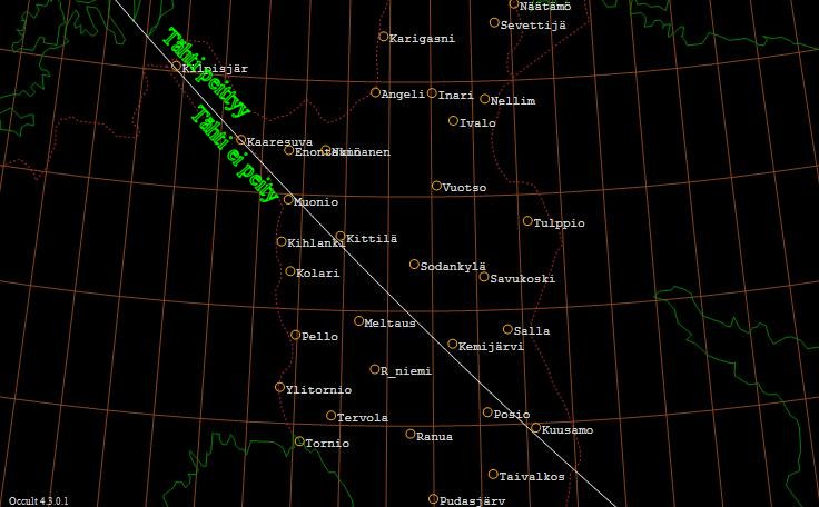 (37 km), Meltauksessa (39 km) ja Kolarissa (53 km). Viivan eteläpuolella tähti ohittaa Kuun. Kuun pohjoisnapa