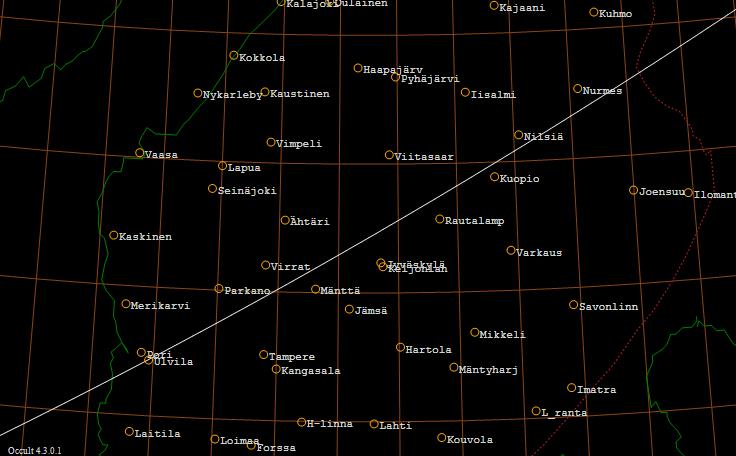 Havaitsemiseen tarvitaan 20 cm:n läpimittainen kaukoputki. Kuu on sivuamisviivalla 13 - 18 asteen korkeudella