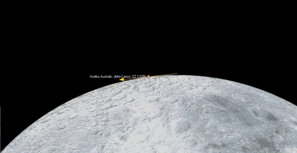 Asellus Australiksen (ZC 1310, delta Cancri, 3,9 mag) sivuamisviivan kulku