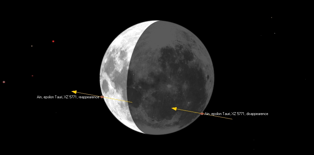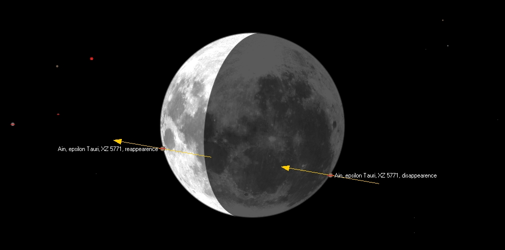 ZC 0668, ε Tauri, 3,5 mag peittyy Helsingissä 29.03.2020 klo 22.27.35 ja tulee esiin klo 23.23.39