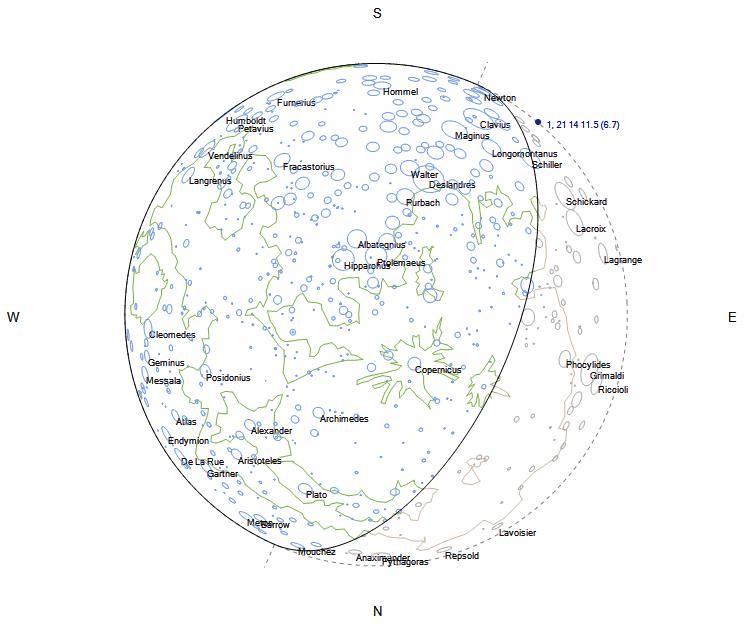 eli positiivinen. Grimaldi on kaukana Kuun reunasta ja Humboldt on reunan lähellä.