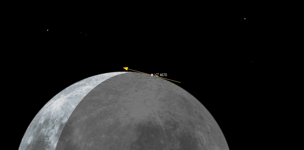 tapahtuu kirkkaan reunan puolella. Havaitsemiseen tarvitaan 20 cm:n läpimittainen kaukoputki. Kuu on