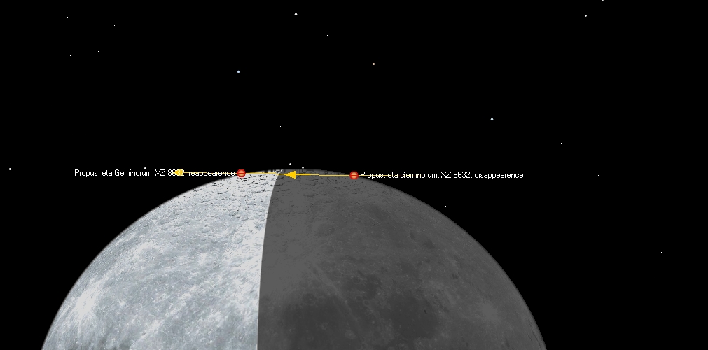 Propus (η Geminorum) -tähden (ZC 0946) sivuaminen 31.03./01.04.2020