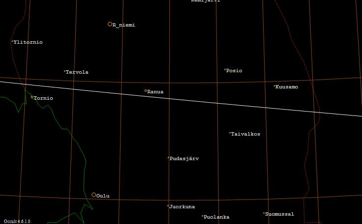 Taivalkoskella (27 km) ja Posiolla (32 km). Viivan eteläpuolella tähti ohittaa Kuun. Kuun pohjoisnapa on kääntynyt