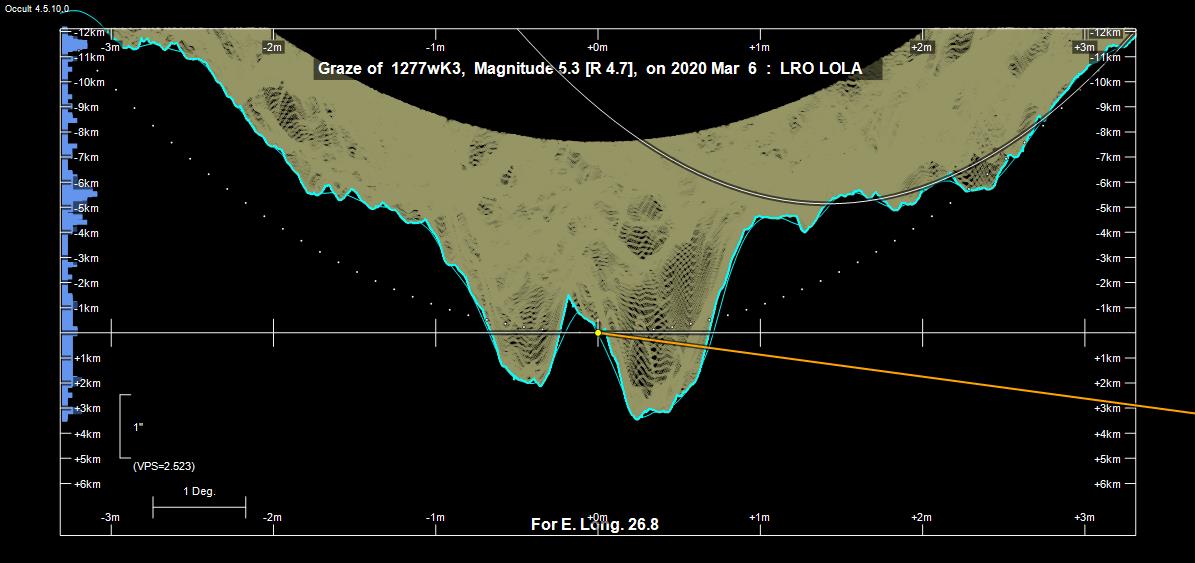 pimeän reunan puolella. Havaitsemiseen tarvitaan 10 cm:n läpimittainen kaukoputki. Kuu on sivuamisviivalla