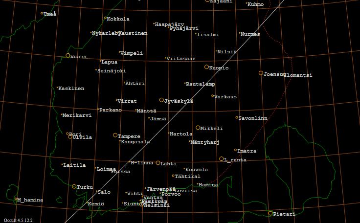 ZC 3458 -tähti, 6,2 mag sivuaa Kuun pohjoista reunaa Salon ja Nurmeksen välisellä linjalla. Pienimmät etäisyydet