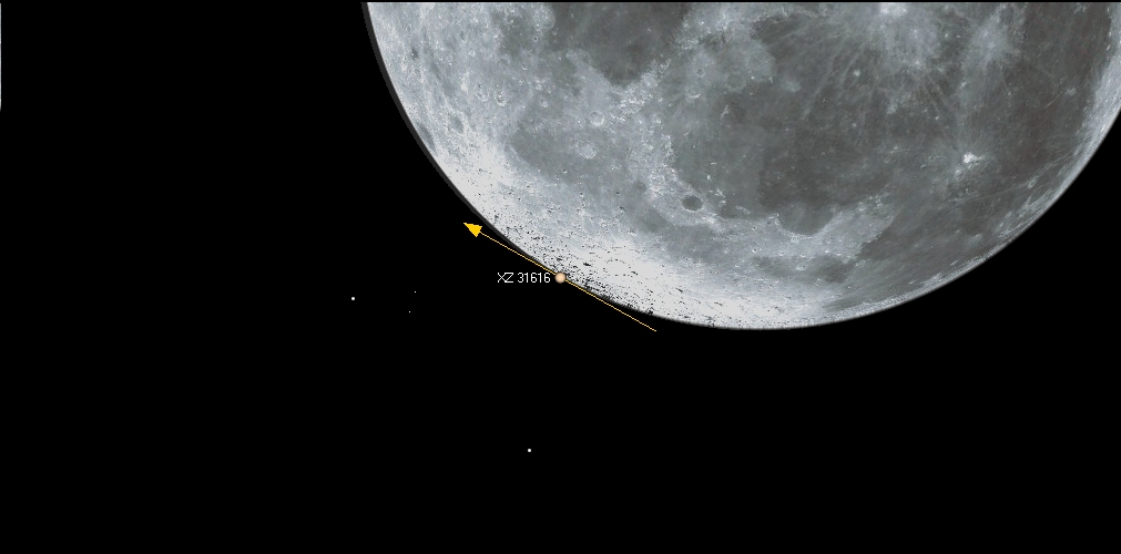 osa pienenee. Sivuaminen tapahtuu pimeän reunan puolella. Havaitsemiseen tarvitaan 20 cm:n läpimittainen kaukoputki.