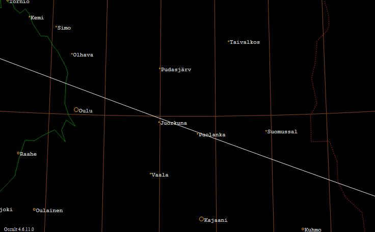 | Pituus | Leveys | kello | Aur h | Kuun h | Kuun ats | PA | AA | CA | Paikkakunta |