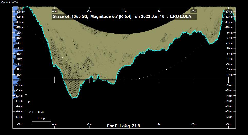 Viivan eteläpuolella tähti ohittaa Kuun. Kuun pohjoisnapa on kääntynyt 3,9 astetta Maasta poispäin. Kuusta näkyy 99