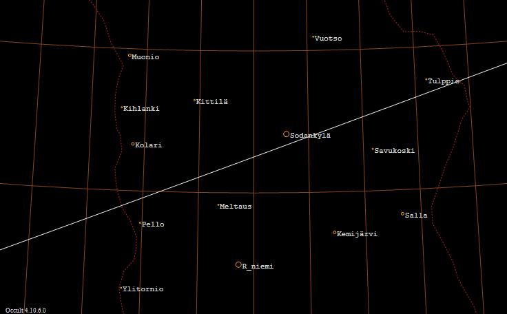 ZC 0842, 6,5 mag sivuaa Kuun eteläistä reunaa Sodankylän ja Tulppion välisellä linjalla ja peittyy